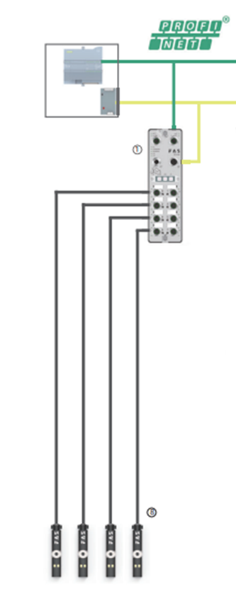 模塊與PLC、IO_Link主站模塊、相同模塊之間連接采用PROFNET協(xié)議。通訊距離在100米以內(nèi)。